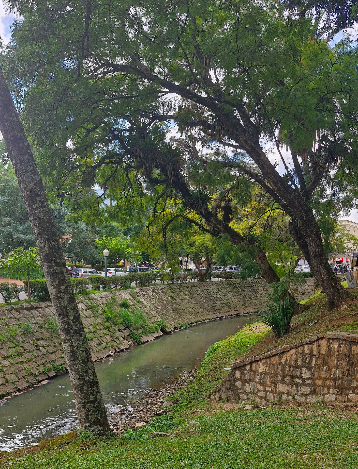 A vantagem é que isso tudo vira história pra contar. E inspirar. Enquanto me perdia, cheguei em um lugar que tinha um paredão de pedra na margem do rio e árvores ao redor, pensei em um cenário de livro de fantasia. Quantos elfos viveriam nas frestas e no interior das árvores? Quais batalhas seriam travadas ali? Algum corpo caiu e precisou ser içado?