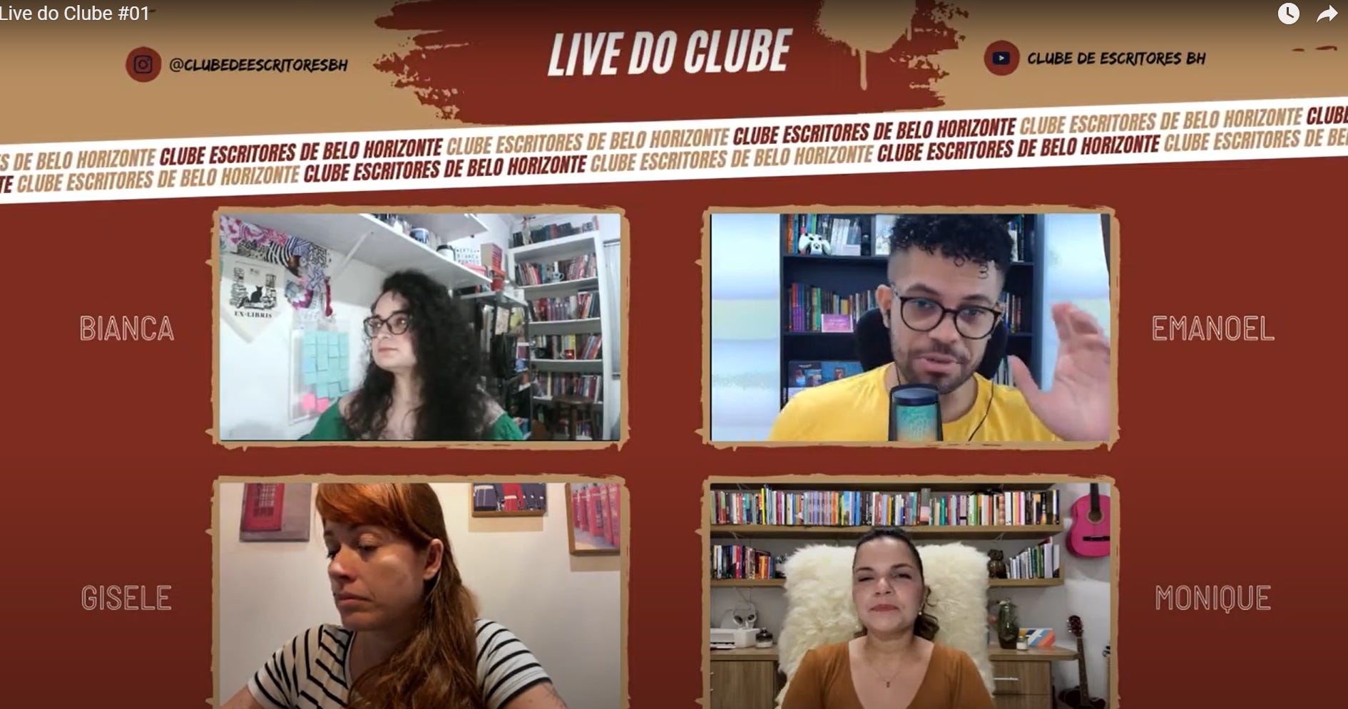 E na última quarta, às 20:35, tivemos nossa primeira live. Falamos sobre o clube, sobre nós mesmo, sobre planos para o futuro e sobre os próximos encontros.